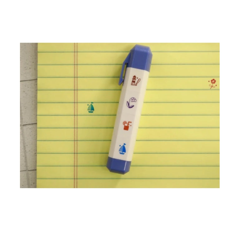 Dodaj odrobinę stylu do swoich notatek dzięki tym przenośnym stemplom, zaprojektowanym we współpracy z japońskim artystą Eric Small Things. Zestaw czterech stempli ułożonych jeden na drugim, które łatwo rozdzielisz za pomocą prostego przekręcenia. Dzięki kompaktowej budowie i klipsowi, stemple idealnie mieszczą się w piórniku lub kieszeni.