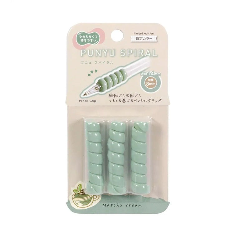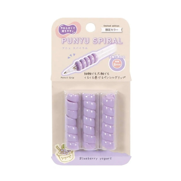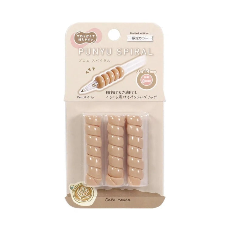 Uniwersalny uchwyt, który można owinąć wokół przyborów piśmienniczych o różnej grubości – od cienkich rysików (ok. 8 mm) po grube długopisy wielokolorowe (ok. 14 mm). Wykonany z miękkiego elastomeru, zapewnia wygodę i redukuje zmęczenie podczas użytkowania. Spiralny kształt idealnie dopasowuje się do palców.