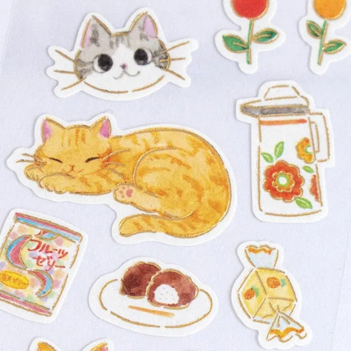 • Uroczy, retro design: Naklejki przedstawiają leniuchujące koty wśród retro sprzętów i przedmiotów.