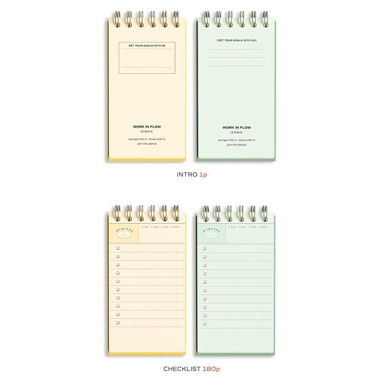 Wyobraź sobie jednego, eleganckiego towarzysza dla wszystkich Twoich myśli. Iconic Flow Checklist jest wystarczająco mały, by wsunąć go do kieszeni płaszcza lub torebki, a jednocześnie wystarczająco pojemny, by pomieścić cały Twój świat. Od pilnych codziennych sprawunków i długoterminowych celów, po spontaniczne listy zakupów i ambitne marzenia o podróżach – każdy plan znajdzie swoje miejsce na tych starannie zaprojektowanych stronach. Jego smukły profil sprawia, że jest idealnym dodatkiem na biurko, wprowadzając delikatny akcent kolorystyczny bez zagracania przestrzeni.
