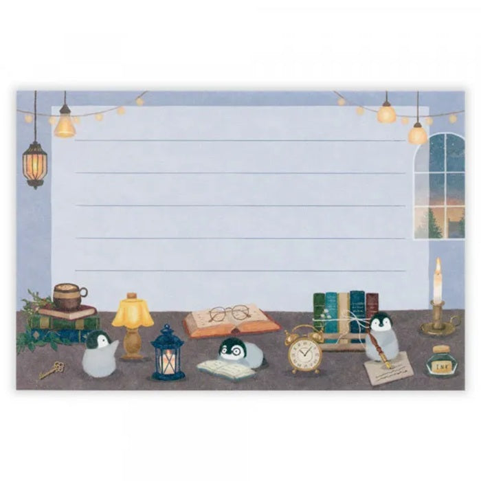 Kolekcja "Mattari", co po japońsku oznacza relaks i swobodę, wnosi do korespondencji atmosferę ciepła i przytulności. Ilustracja pingwina zaczytanego w blasku świec i lampek to małe dzieło sztuki, które wywoła uśmiech na twarzy każdego odbiorcy. Wysokiej jakości papier sprawia, że pisanie staje się czystą przyjemnością, a każde słowo nabiera wyjątkowego charakteru.
