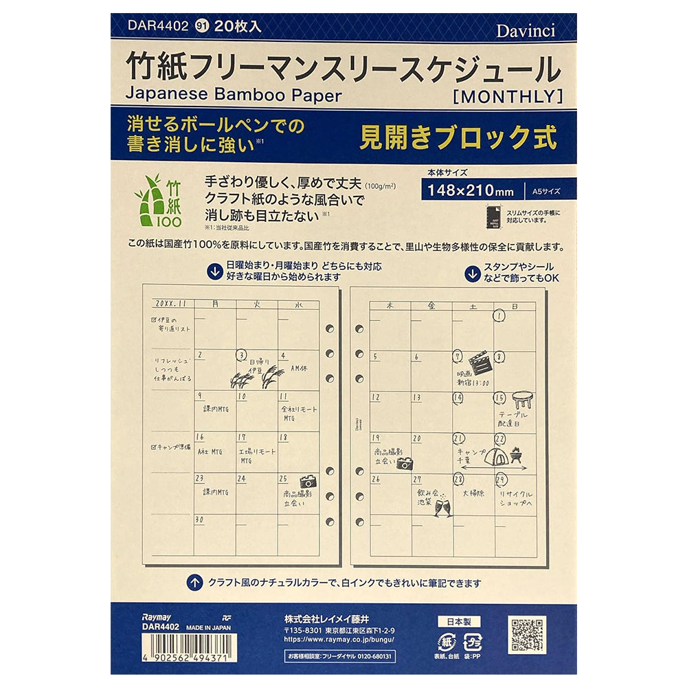 Wkład do segregatora A5 | Kalendarz wieczny miesięczny
