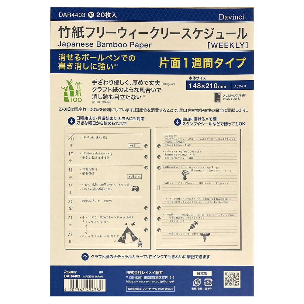 Wkład do segregatora A5 | Kalendarz wieczny tygodniowy