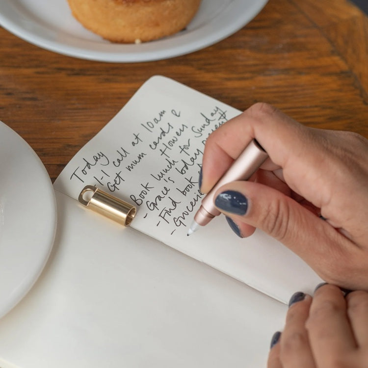 Poznaj The Field Mouse w odcieniu Blush – elegancki cienkopis, który zawsze dotrzyma Ci kroku. Ten kompaktowy, wielokrotnie napełniany cienkopis to idealny towarzysz dla osób ceniących styl i funkcjonalność. Dzięki lekkiej konstrukcji z anodowanego aluminium i subtelnemu różowemu wykończeniu, doskonale sprawdzi się w każdej sytuacji – od szybkich notatek po kreatywne szkice. Wyposażony w solidną pętlę na klucze, łatwo przypniesz go do torby, smyczy lub kluczy.