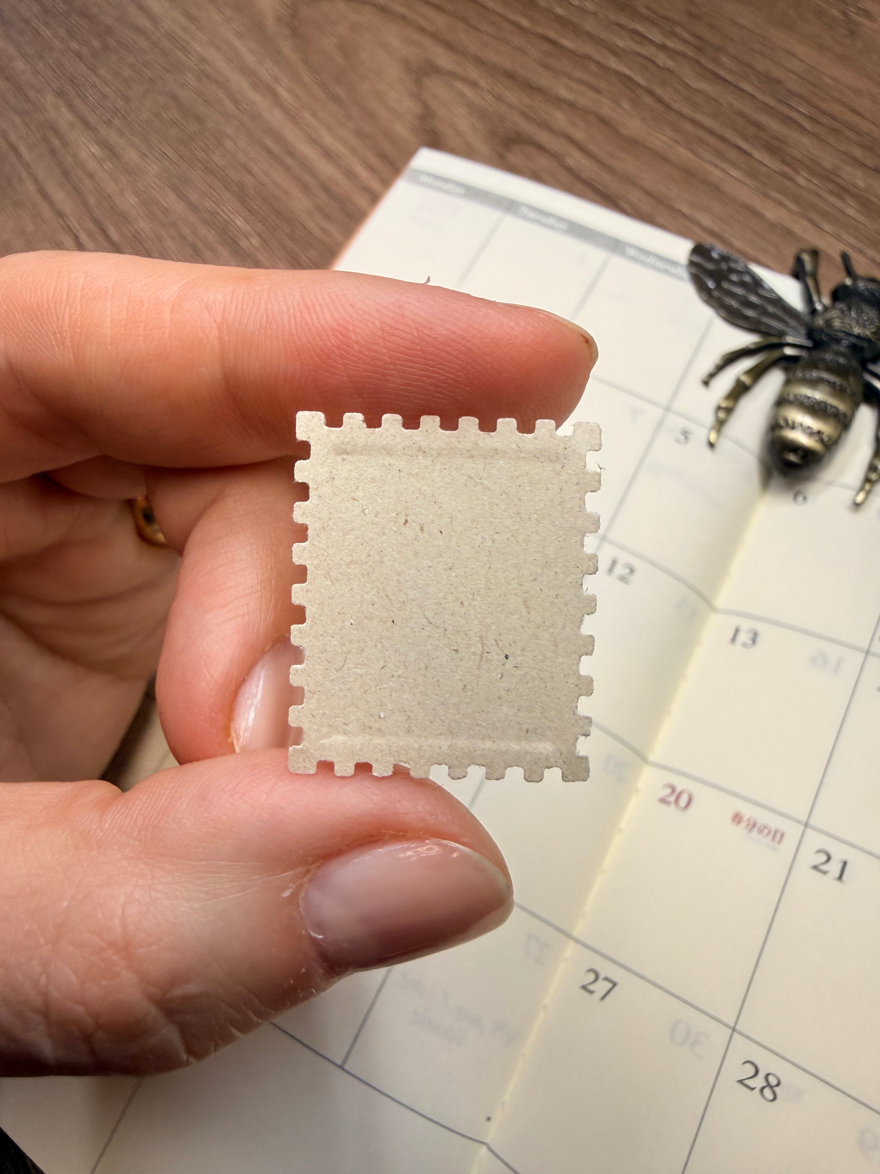 Dobrany tak, aby wycięte znaczki pasowały do miesięcznych kalendarzy Traveler's Notebook.