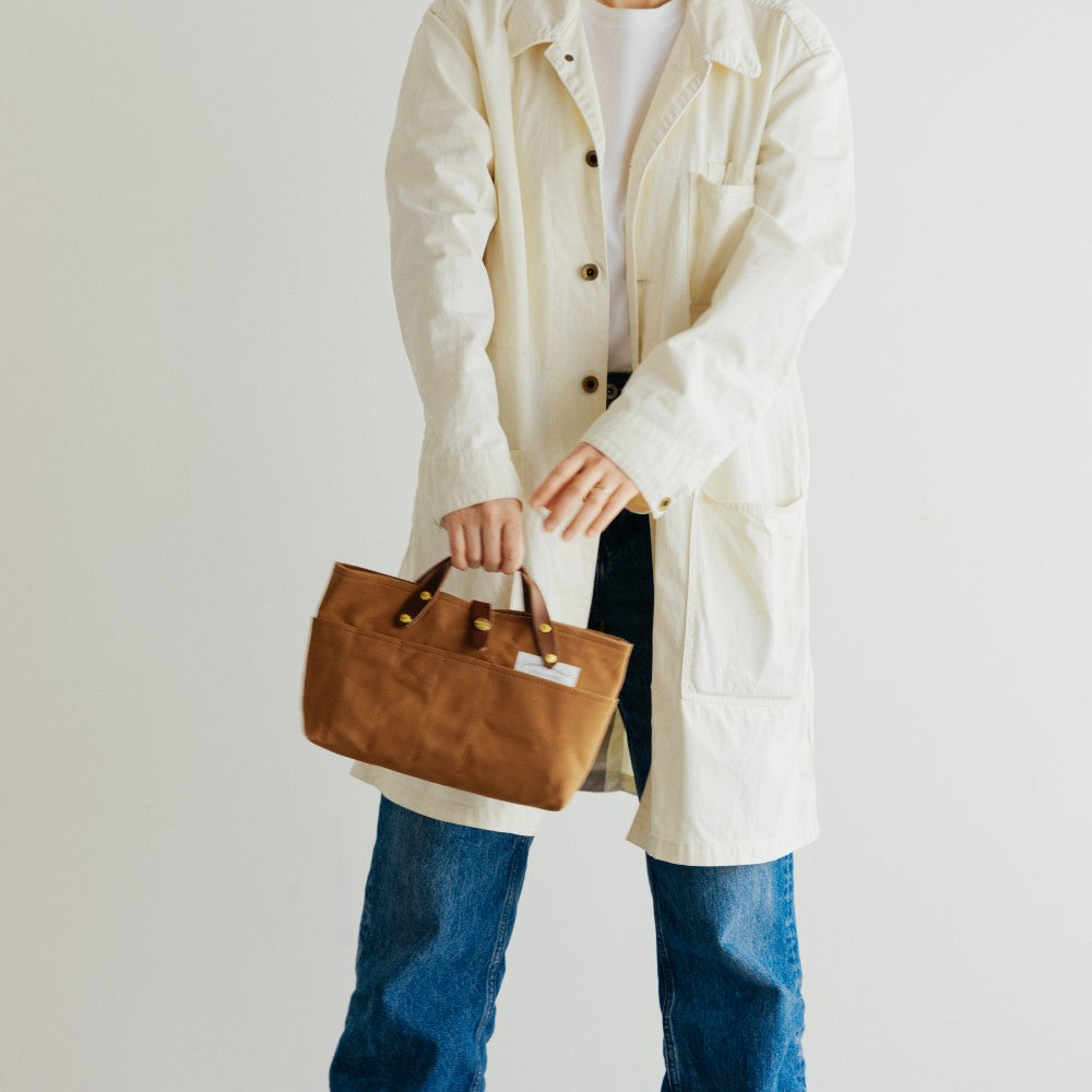 Odkryj idealne połączenie formy i funkcji dzięki torbie The Superior Labor Paraffin Canvas Mini Bag. Ręcznie wykonana w Japonii, ta torba to coś więcej niż tylko akcesorium; to świadectwo świadomego życia i trwałej jakości. Wykonana z lekkiego, wodoodpornego płótna powlekanego parafiną, pięknie utrzymuje swój kształt, jednocześnie chroniąc Twoje niezbędne przedmioty. Jej strukturalna konstrukcja i sztywny klin pozwalają jej stać samodzielnie, co czyni ją stylowym i praktycznym dodatkiem do biurka lub dowolnego pomieszczenia w domu.