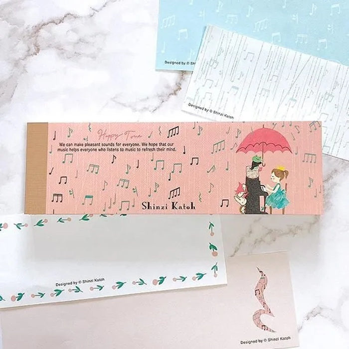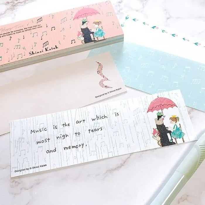 Uroczy notatnik zaprojektowany przez Shinzi Katoh, idealny dla miłośników muzyki i pięknej papeterii. Jasnoróżowa okładka ozdobiona czarnymi nutami tworzy radosny, muzyczny wzór, a delikatny design wprowadza harmonię i urok do codziennych zapisków.