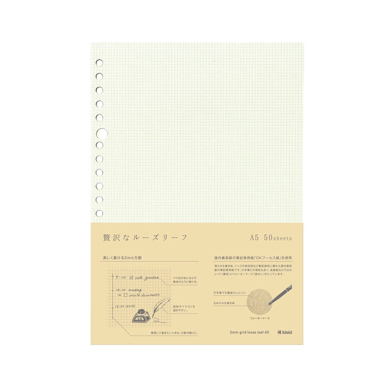 - Dziurkowanie: 20 otworów rozmieszczonych co 9,7 mm (od środka do środka), kompatybilne z europejskimi segregatorami dwupierścieniowymi i segregatorami Kleid.